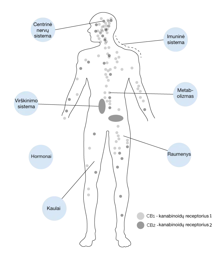 Kanabinoidų receptoriai yra žmogaus organizmo ląstelių paviršiuje ir „priima“ signalus iš išorinės ląstelės aplinkos. Jie perduoda informaciją apie pokyčius ląstelės viduje ir inicijuoja atitinkamas ląstelių reakcijas.